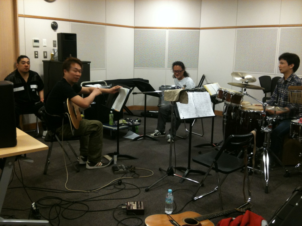 写真は今回のライブのリハーサル風景です。あ、ピアノの恩田さんがいない?